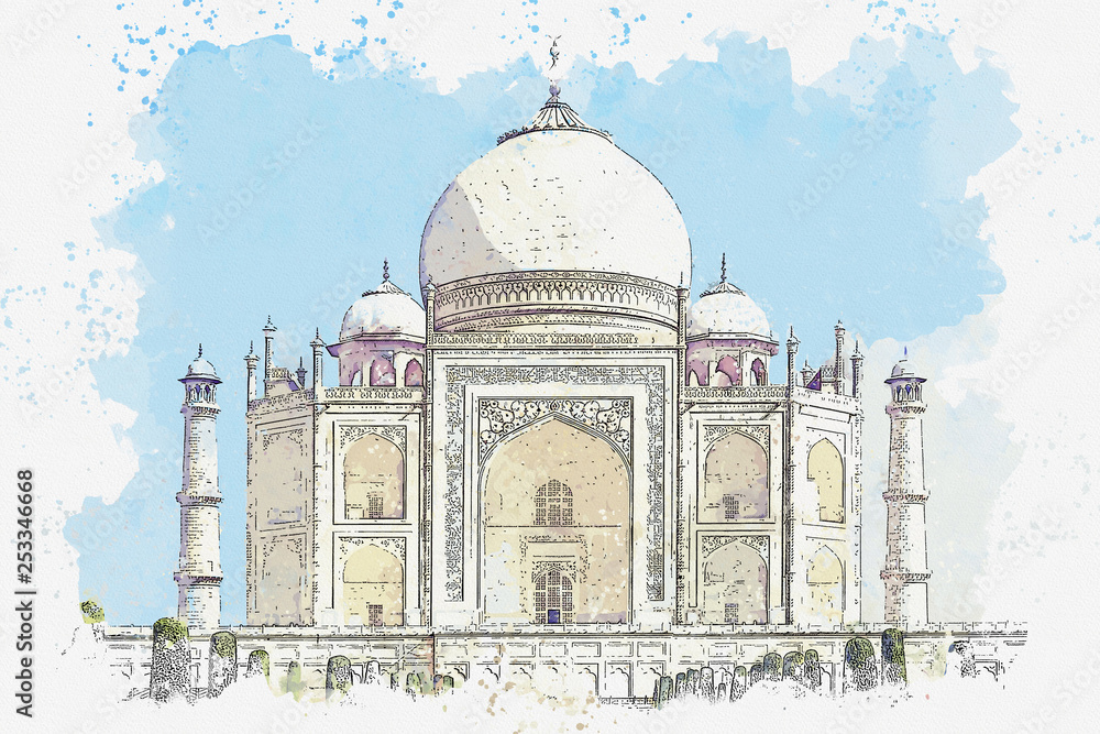Watercolor Sketch Or Illustration Of The Beautiful View Of The Taj Mahal In India Stock Illustration Adobe Stock